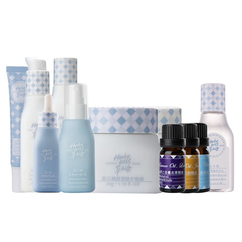 产品明细:30ml欧石楠舒缓修护敏肌精,150ml矢车菊花舒颜修护卉水,100ml欧石楠舒缓修护疗肤水,80ml欧石楠舒缓修护乳液,20g欧石楠舒缓修护眼菁华,30ml欧石楠舒缓修护肌底液,50g欧石楠舒缓修护乳霜,50欧石楠舒缓修护晚霜,10ml草之语蓝甘菊精油,10ml草之语薰衣草精油,10ml茉莉精油