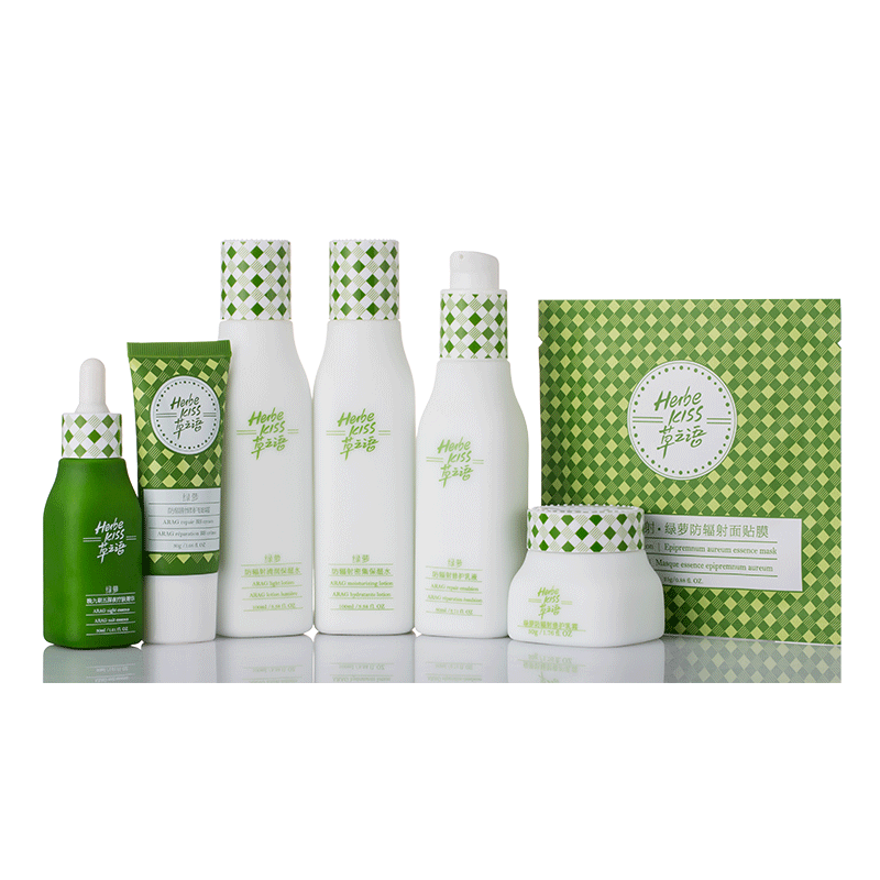 洁面爽肤后,取适量乳液点抹与面部,用指腹打圈按摩吸收,配合草之语绿萝防辐射系列产品使用效果更佳。
