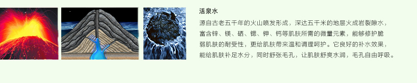 草之语活泉水源自古老的地层火成岩裂隙水,富含锌、镁、硒、锶、钾、钙等有益于肌肤的微量元素。草之语活泉水具有补水、舒缓效果;同时,其低钠、低矿化度以及均衡的钙镁硒离子比例确保了脆弱肌肤的耐受性,更给肌肤带来温和调理呵护。尤以搭配草之语非洲五色土面膜泥为佳。